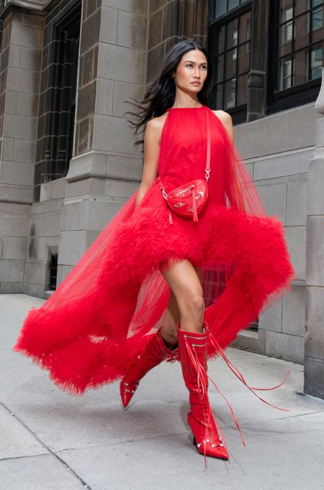 The AKIRA Label Ari Tulle Ruffle High Low Mini Dress In Red features a sheer, flowy tulle outer layer, a sleeveless design, an opaque inner slip, non-stretch slick satin lining, a mini length silhouette, a high low hem with dramatic ruffled trim, and a keyhole back. - Shell: 100% Polyester, Lining: 95% Polyester 5% Spandex (all measurements are approximate from size small) - 30” and 55” Shoulder to Hem - Model is 5'11" - Imported Product ID: 343885