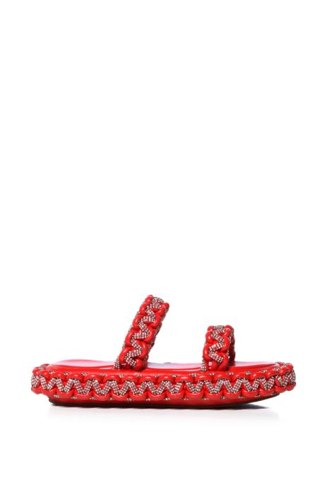 AZALEA WANG ALL DAY EMBELLISHED WOVEN FLATFORM SANDAL IN RED