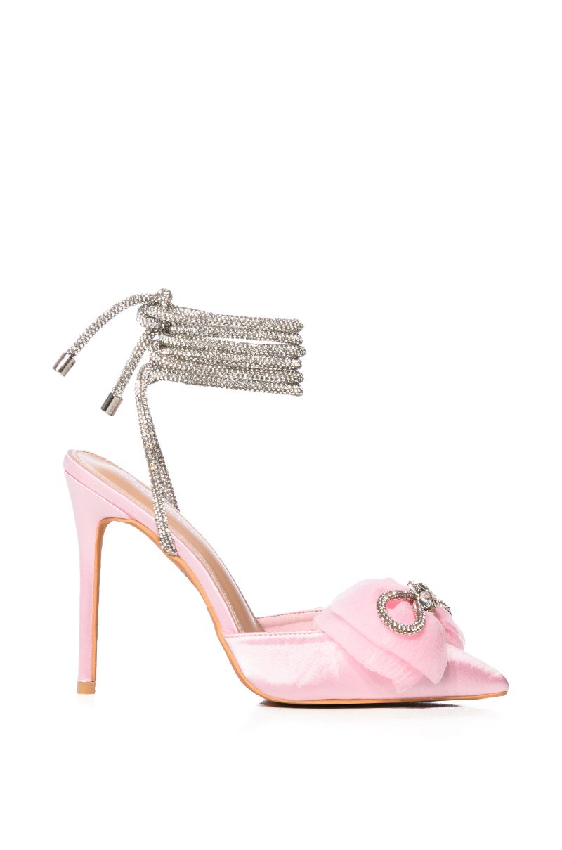 AZALEA WANG CHANTE EMBELLISHED LACE UP PUMP WITH BOW IN PINK