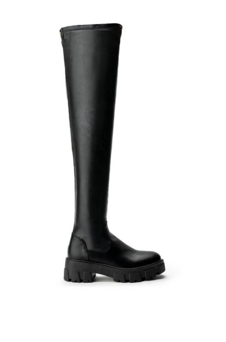 AZALEA WANG LATE NIGHTS FLATFORM BOOT WITH 4 WAY STRETCH IN BLACK