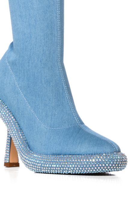 AZALEA WANG MAE EMBELLISHED BOOTIE IN DENIM