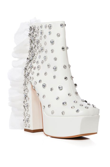 AZALEA WANG MYKA EMBELLISHED BOOTIE IN WHITE