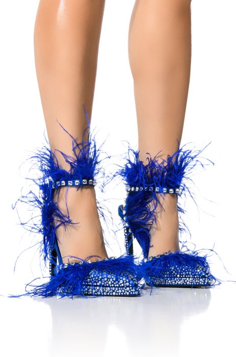 AZALEA WANG SEINE BLUE FEATHER AND DIAMOND EMBELLISHED PUMP IN BLUE