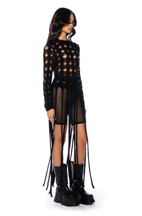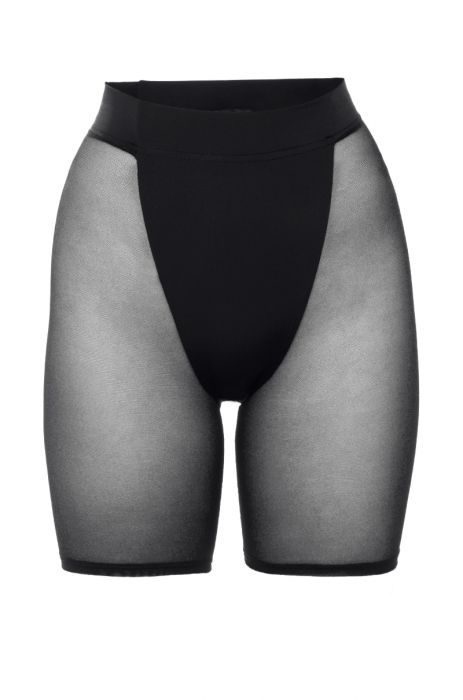 Sheer genius. The AKIRA Label Barely There Mesh Biker Shorts Features a high rise elastic waistline, a sheer mesh fabrication, and panty-like front and back panel detailing. Pair with a sleek bodysuit and studded biker jacket for a look that rocks. Complete your look and shop the rest of the AKIRA Essentials Collection here! - Shell 1: 87% Nylon 13% Spandex, Shell 2: 85% Nylon, 15% Spandex (All measurements are approximate from size small) - 11.5” Rise - 6" Inseam - Model height is 5'10.5" - Imported Product ID: 300205