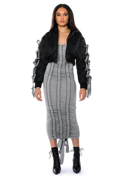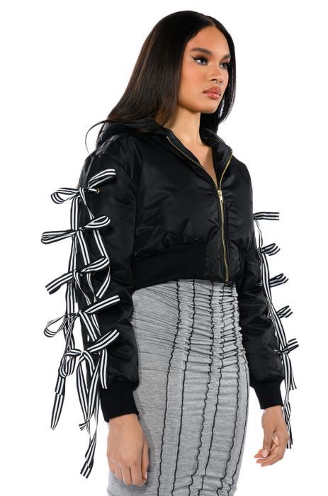 BETTER LUCK NEXT TIME BOMBER WITH LACES in BLACK MULTI
