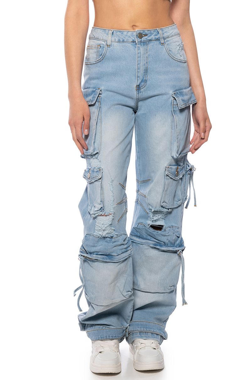 KEEP IT ON THE LOW RELAXED FIT CARGO JEANS IN LIGHT BLUE DENIM