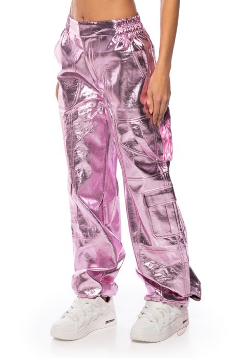 OUT OF THIS WORLD METALLIC CARGO PANTS IN PINK