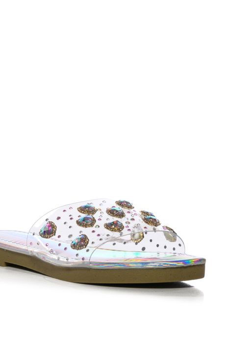 ROANA HOLOGRAPHIC EMBELLISHED FLAT SANDAL